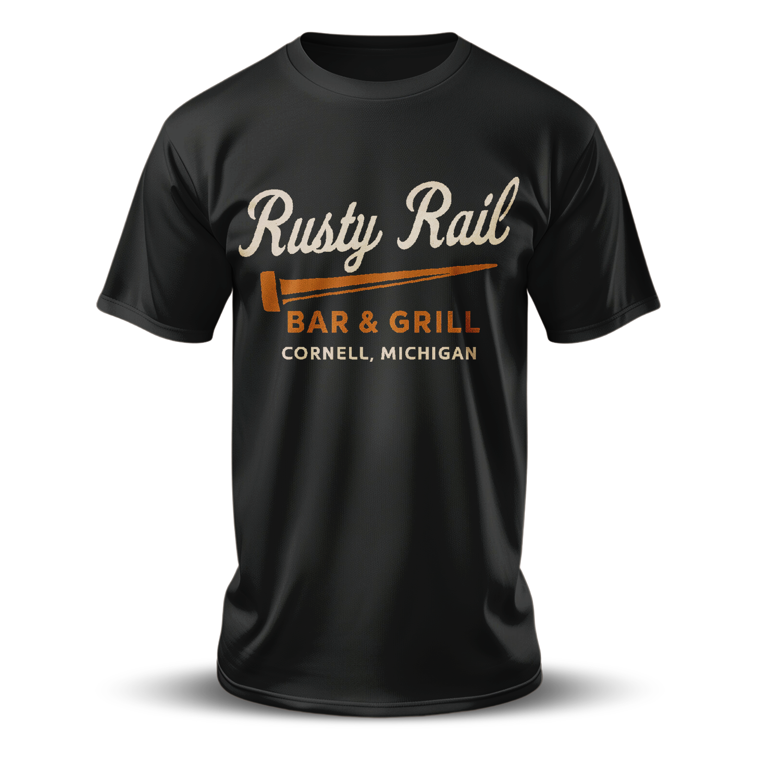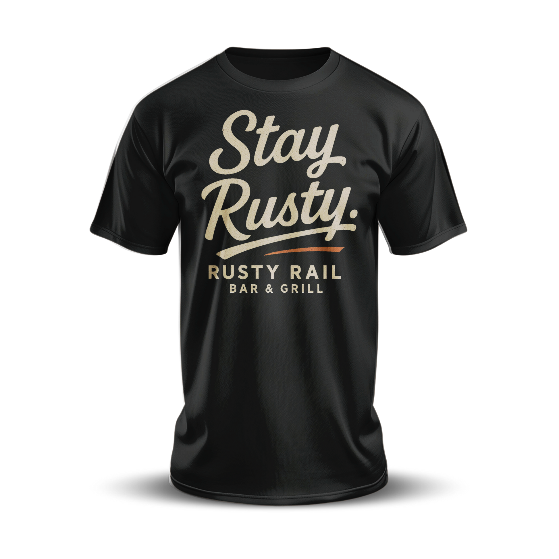 This is the shirt people wear when they want strangers to know they’ve had at least one questionable night at Rusty Rail. Soft, comfy, and built like the guy at the end of the bar who somehow never misses a day of work. Whether you’re grabbing a burger or trying to remember where you parked, this tee has your back.